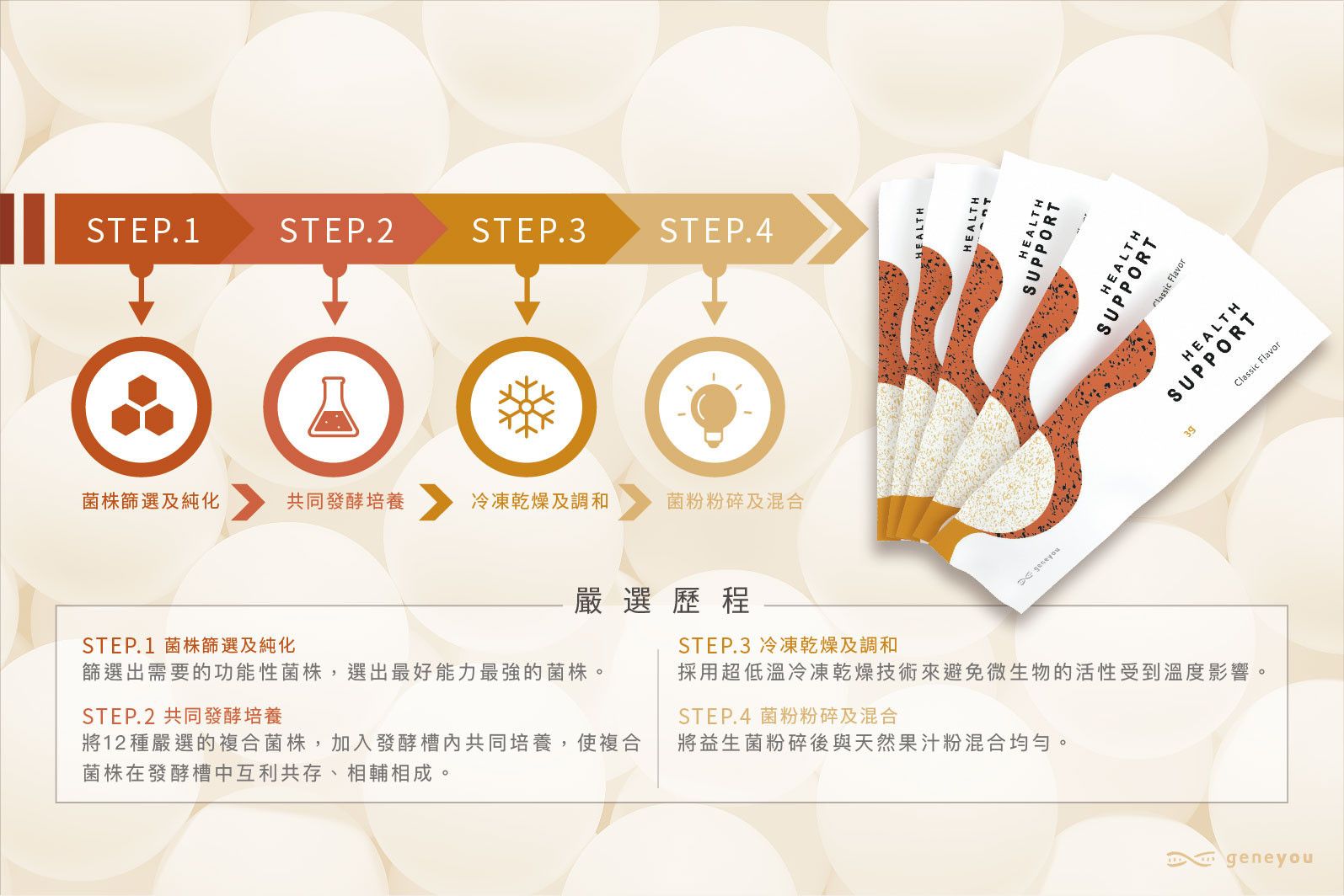 主成分:綜合乳酸菌 [嗜酸乳桿菌、保加利亞乳桿菌、乾酪乳桿菌、副乾酪乳桿菌、植物乳桿菌、洛德乳桿菌、鼠李糖乳桿菌、比菲德氏菌、短雙岐桿菌、比菲德氏-龍根菌、納豆菌、嗜熱鏈球菌](阿拉伯膠、麥芽糊精、脫脂奶粉、葡萄糖、鳳梨萃取物)、金盞花萃取粉 (日本) [糊精、金盞花萃取物 (含葉黃素)、抗壞血酸]、酵母粉粹取物
