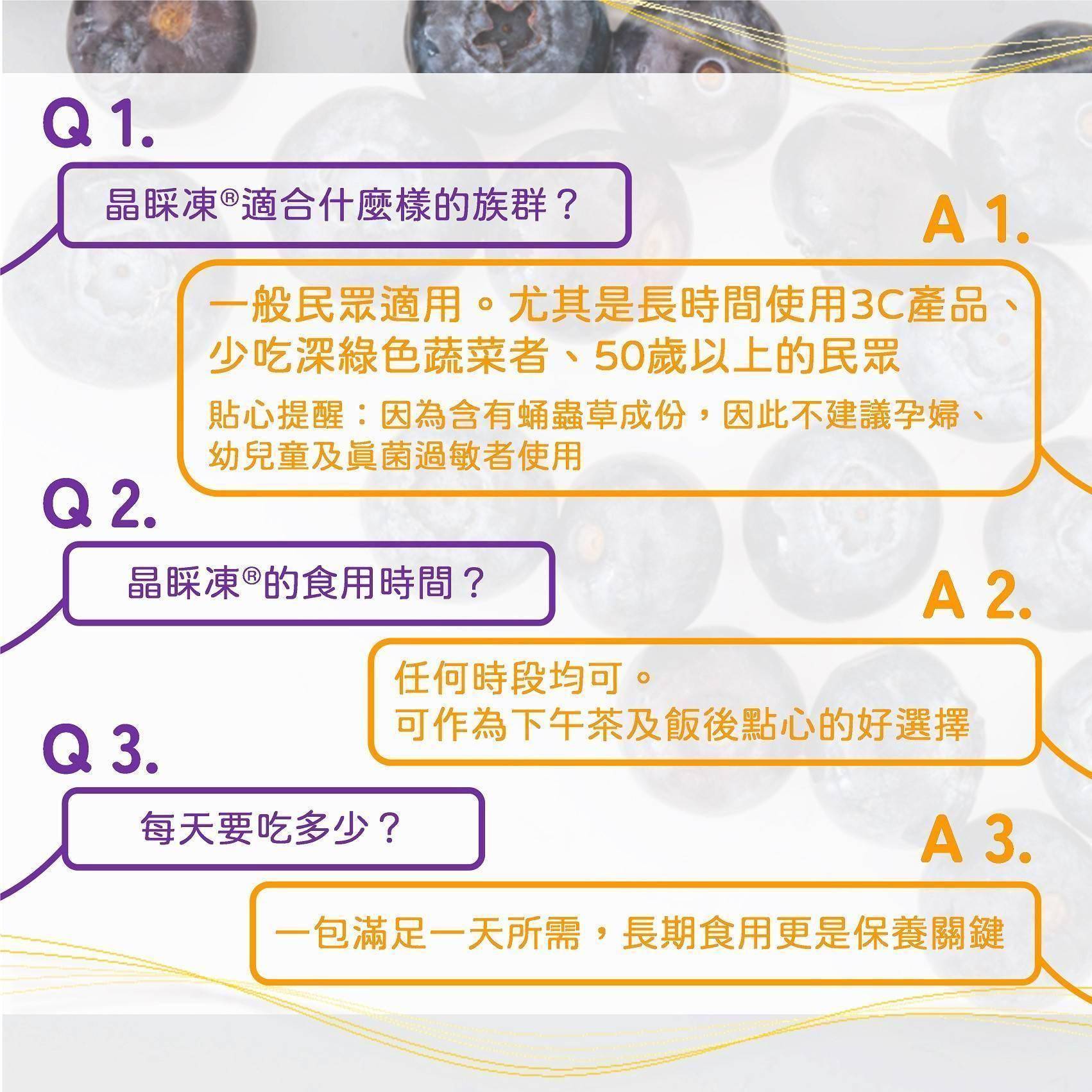 A. 晶睬凍無添加防腐劑和人工色素,由於高含量山桑子,果凍自然呈現深紫色。